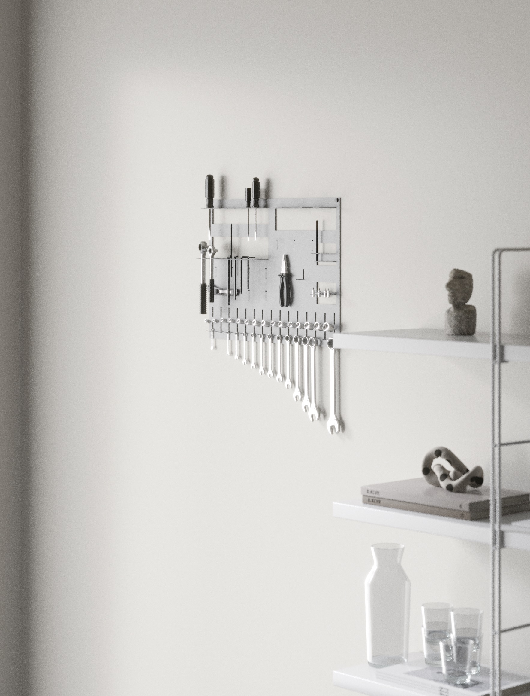 Sir Rack ist mehr als nur eine Werkzeugwand oder ein Wandboard: Es ist ein flexibles System, das sich individuell formen lässt. Einfach die Halterungen und Haken herausbiegen, die benötigt werden – ganz ohne zusätzliches Zubehör. Egal ob in der Werkstatt, im Büro oder Zuhause: Sir Rack passt sich genau deinen Anforderungen an.